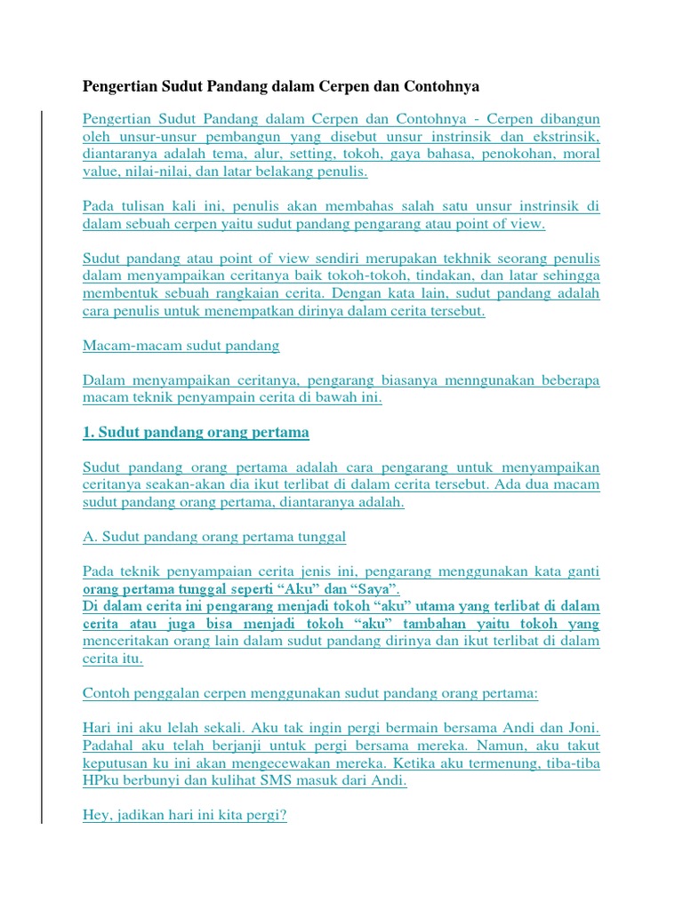 Contoh Cerpen Sudut Pandang Pengertian Dan Contoh